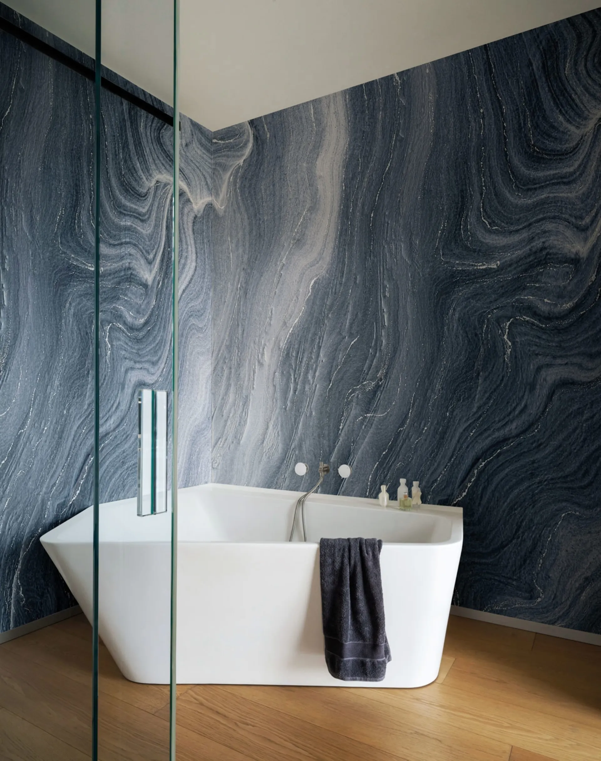 La Carta da parati è la scelta ideale per impreziosire i tuoi spazi! Ultima un'ambientazione design con il modello Stone Wave di London Art.