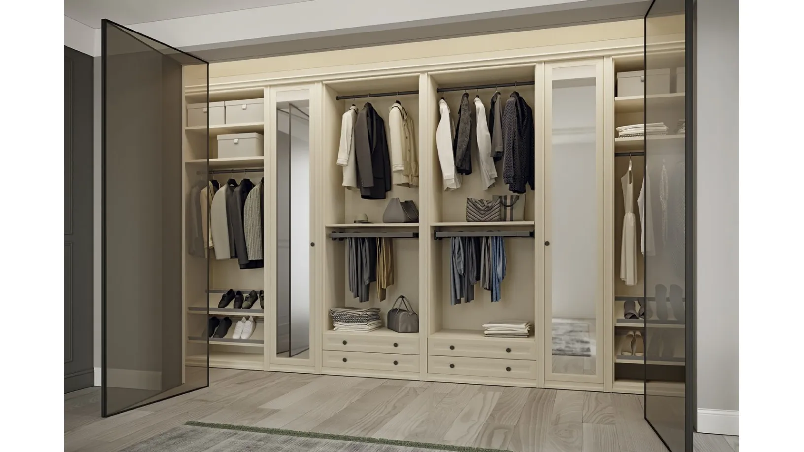 Armadio con ante scorrevoli per spazi classici modello Arcadia AM102: scopri le soluzioni cabine armadio per la zona notte