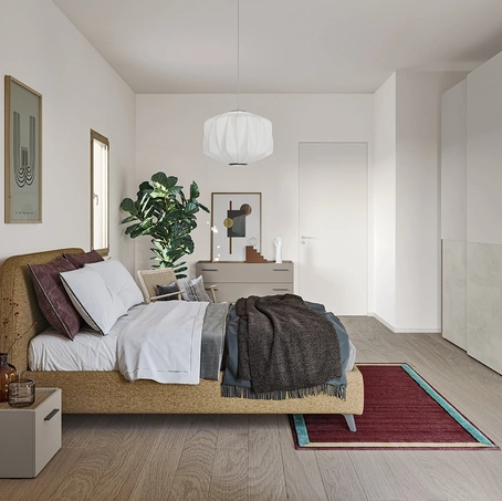 Modello Armadio 16C con ante scorrevoli in melaminico pensato per una camera da letto dai richiami moderni: scopri le soluzioni a muro