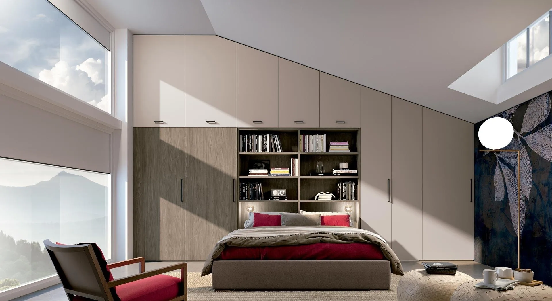 Armadio con ante battenti per spazi moderni modello Composizione 01: scopri le soluzioni per mansarde per la camera da letto