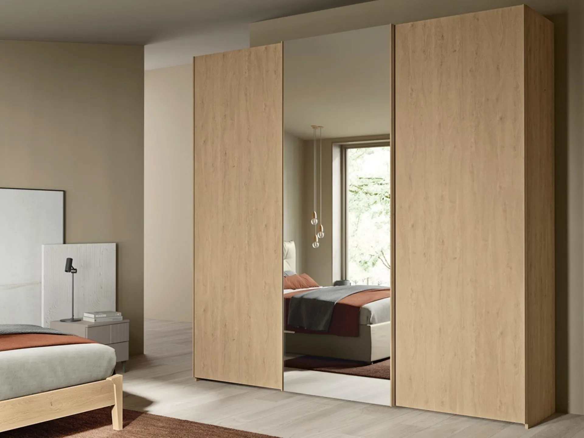 Modello Volo M009 con ante scorrevoli in melaminico pensato per una zona del riposo dai richiami moderni: scopri le soluzioni a muro