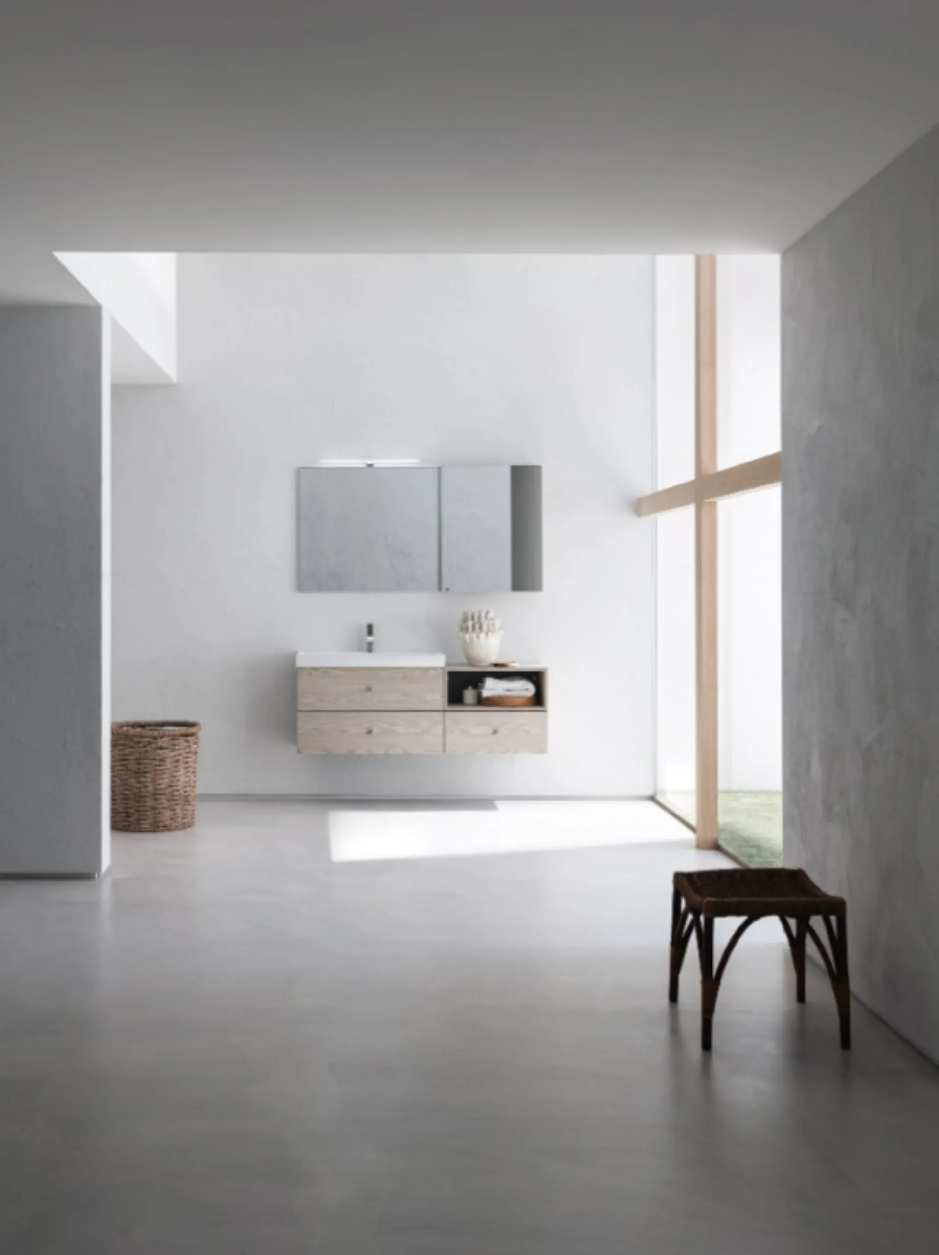 Arreda il bagno di casa moderno alla perfezione con B201 BD021, mobili bagno sospesi e accessori in melaminico di Compab.