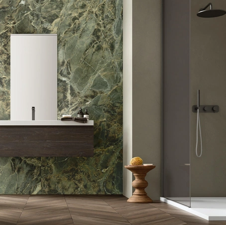 Arreda il bagno di casa moderno perfettamente con Gold 10, mobili bagno sospesi e oggetti in laccato opaco di Arcom.