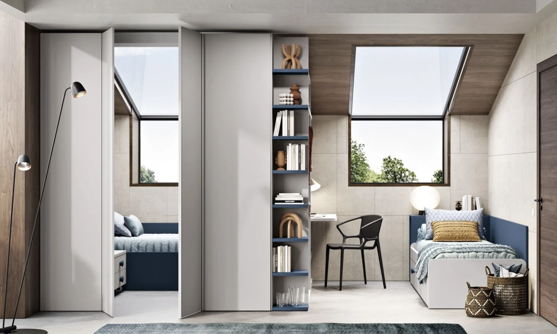 Camerette componibili per ragazzi: scopri il modello in melaminico Cameretta 109 di Ferrimobili per stanzette moderne.
