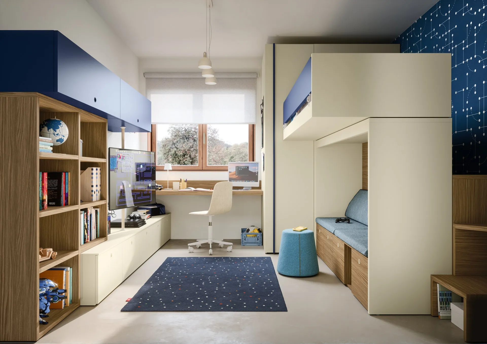 Cameretta con letti a castello Skid di Nidi