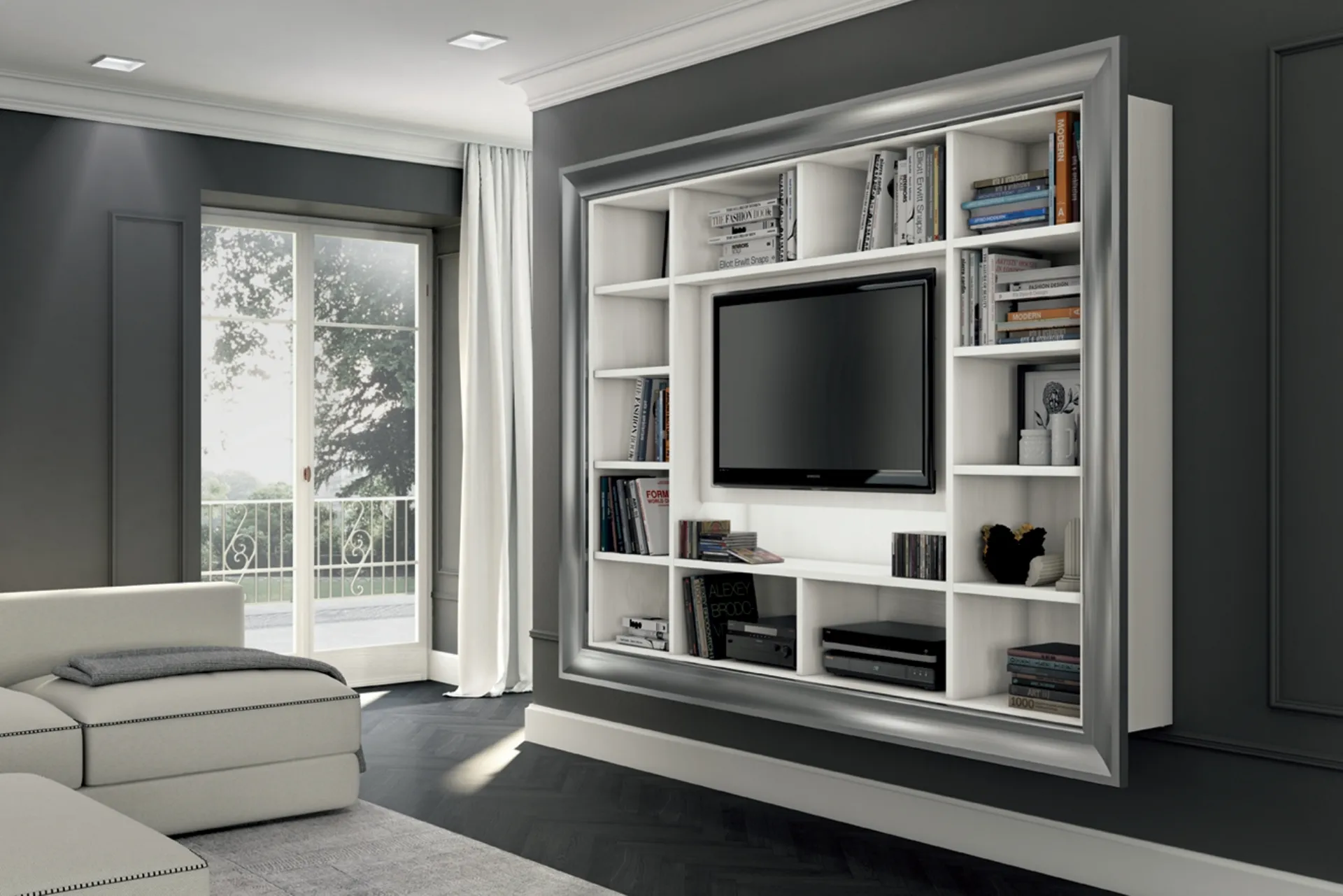 Le Librerie sospese Colombini Casa sono disponibili in diverse conformazioni: angolari, in linea, sospese e realizzabili su misura con vari elementi, mensole e vani. Il living è, per eccellenza, la zona della casa dove ci si riposa ogni giorno, facendo due chiacchiere con familiari e amici, riposando in solitudine o guardando la TV. Contattaci per info e preventivi sul modello mostrato in foto: se vuoi completare stanze classiche, allora questa libreria dalle forme decise fa al caso tuo. La Libreria Arcadia AS007 di Colombini Casa nella fotografia, nella variante in melaminico, è davvero funzionale e versatile, solida e durevole, nonché personalizzabile seguendo le più personali esigenze abitative.
