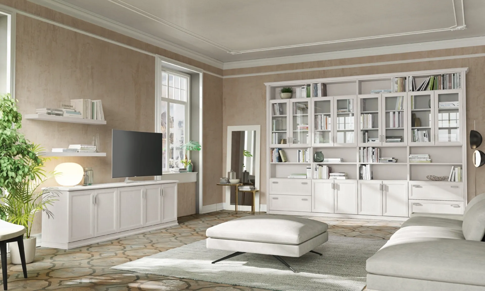 Se sei alla ricerca di librerie a muro per il living, clicca e scopri le nostre soluzioni classiche: il modello Arcadia AS017 Colombini Casa ti aspetta!
