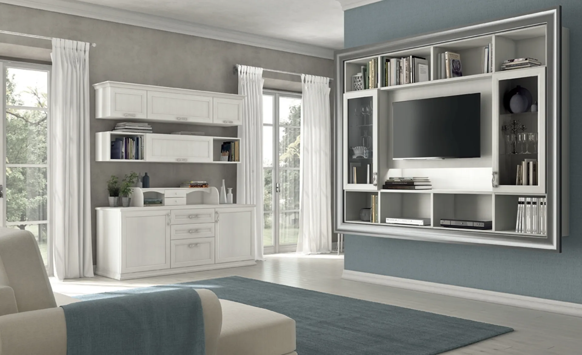 Librerie sospese super funzionali per stanze classiche: scopri di più sul modello Arcadia AS019 del marchio Colombini Casa!