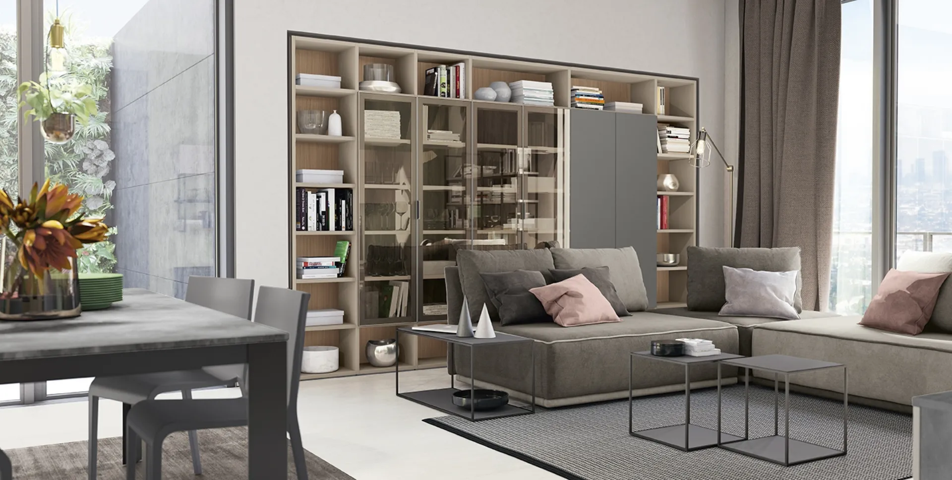 Materiali di pregio e forme decise: scopri la libreria Golf Infinity A03 di Colombini Casa tra le più esclusive Librerie moderne a muro.