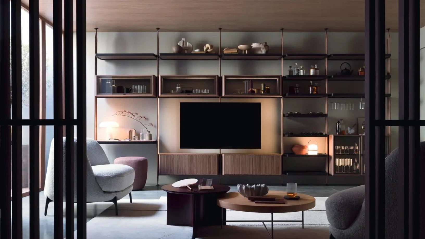 Vuoi progettare un soggiorno dinamico e operativo? Ti presentiamo la parete attrezzata Dedalo Novamobili dalle forme decise moderne.