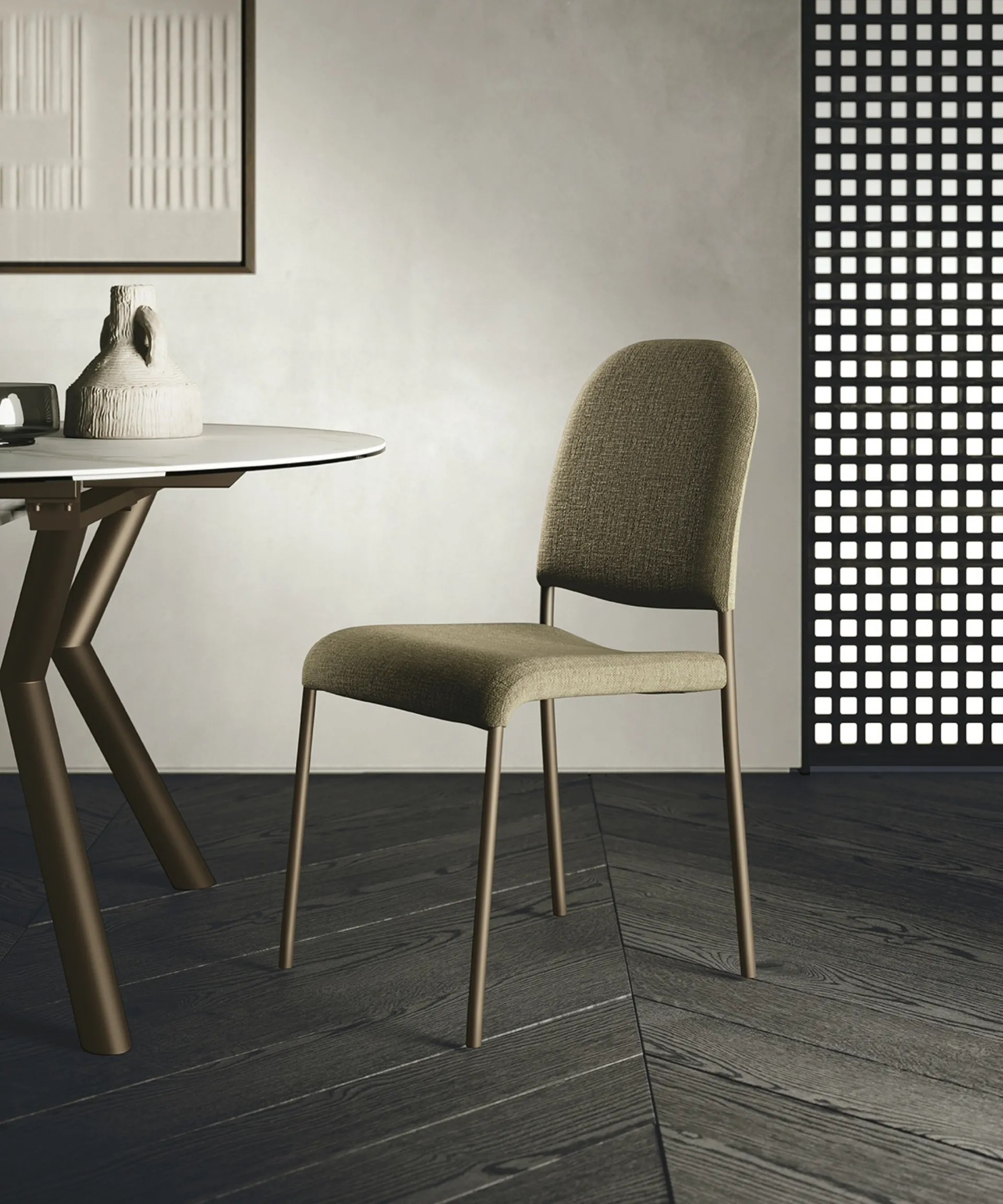Il living e la zona cucina non sono davvero piacevoli e confortevoli se arredati con le Sedie sbagliate, ecco perché devono essere abbinate ai restanti pezzi d'arredo e alle misure della stanza. Nel living o nella zona cucina, le Sedie sono arredamenti immancabili: valorizzano il mood dell'ambiente e rispondono a un ruolo essenziale. Una vasta gamma di sedute fisse da pranzo ti attende nel nostro showroom: contattaci per informazioni e preventivi e ottimizza i tuoi spazi con l'eccellenza che solo Sedit sa assicurarti per mobili e complementi. Sedia in tessuto imbottito Gilda di Sedit: questo modello andrà a completare spazi di ogni genere, in particolar modo ambientazioni moderne.