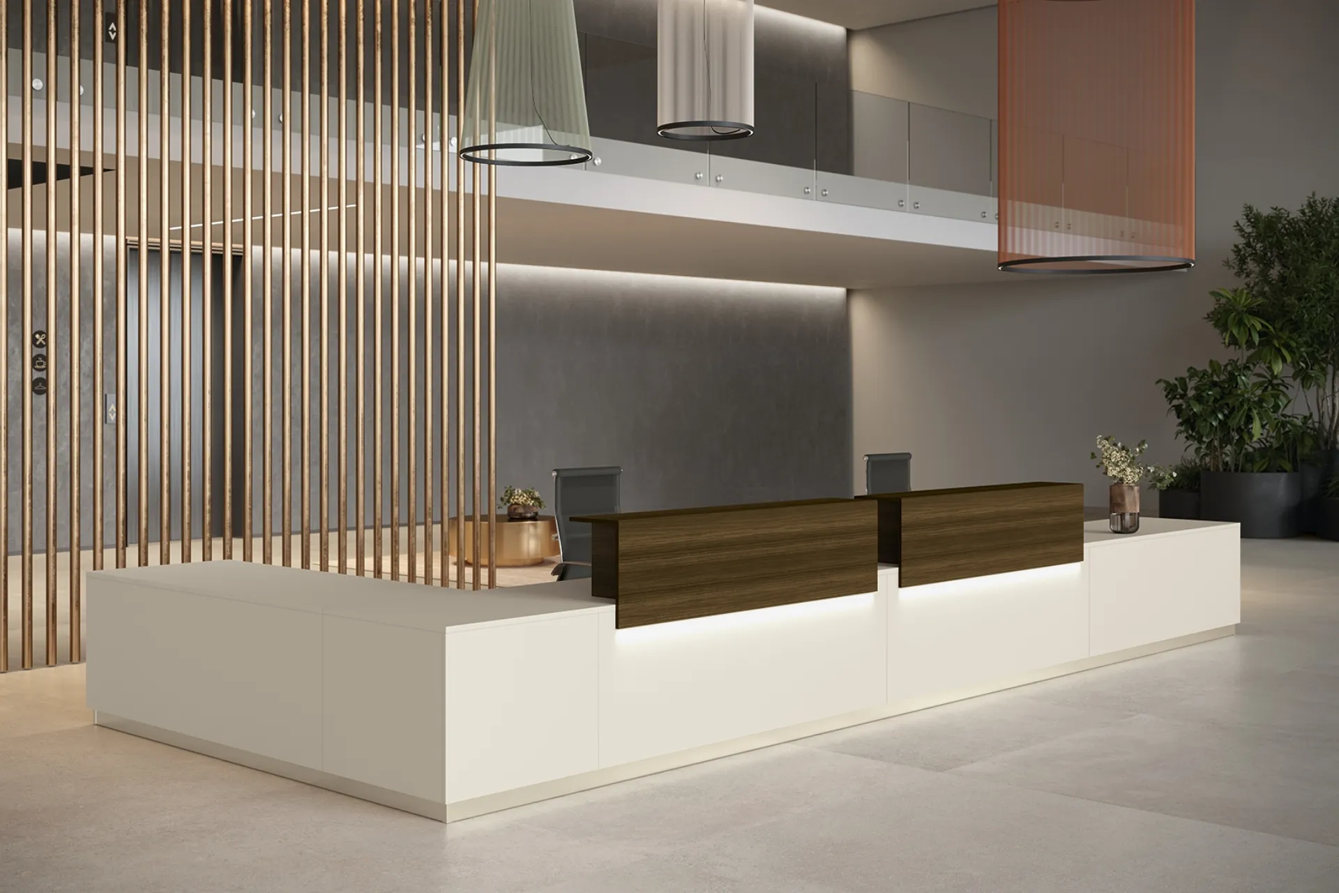 Se vuoi completare gli spazi di lavoro, ecco qui il modello Reception Class 06 di Colombini Office tra differenti soluzioni di banconi reception.
