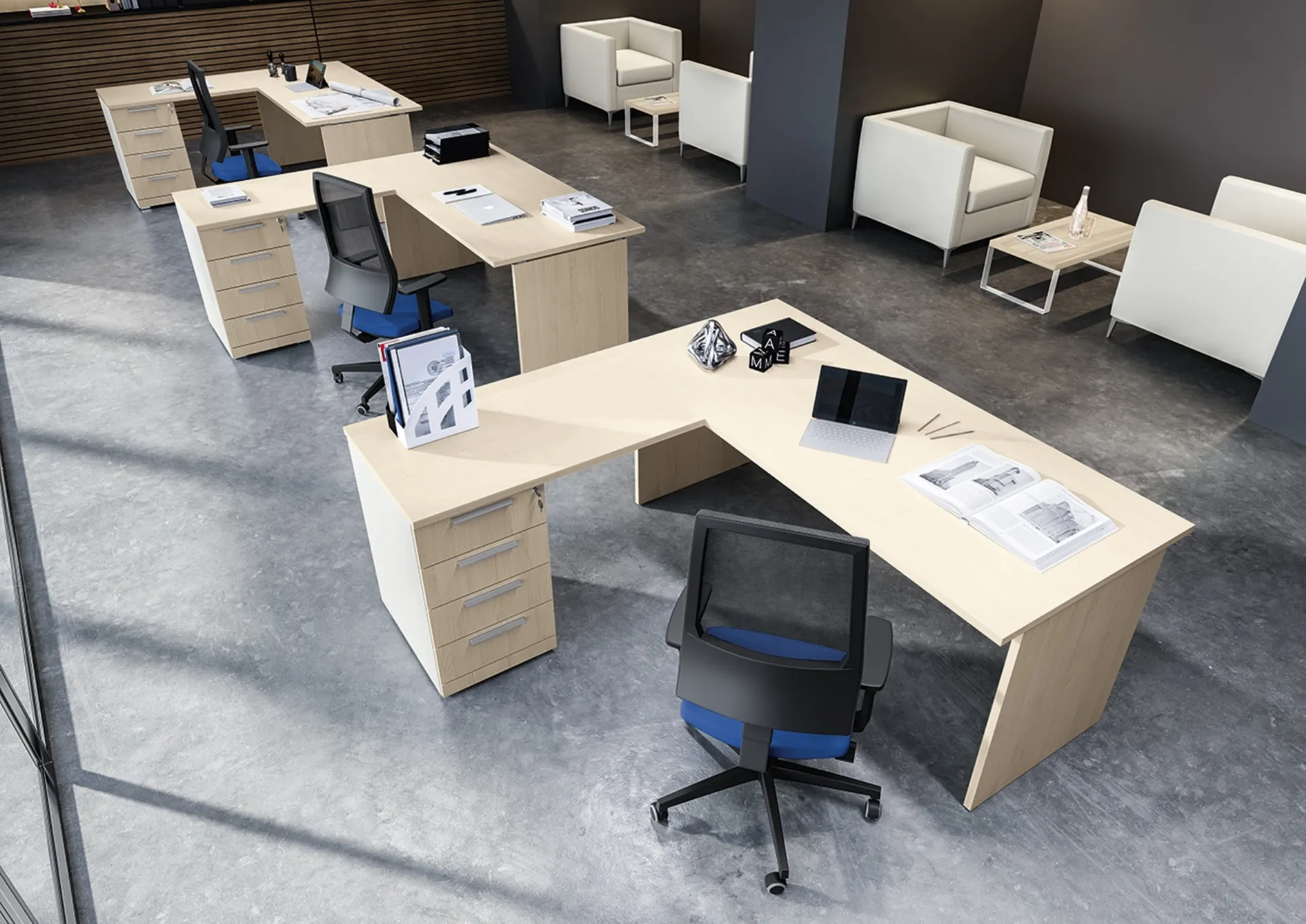 Una ricca gamma di scrivanie operative in melaminico ti aspetta! Il modello Teko Panel di Colombini Office ti aspetta!